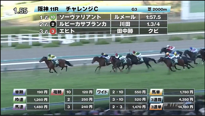 ◎リアンクール(6人気)1着 単勝1,390円、複勝350円 - 12/3【阪神11R】チャレンジカップ
