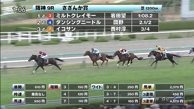 ◎ミルトクレイモー(3人気)1着 単勝610円、複勝150円
