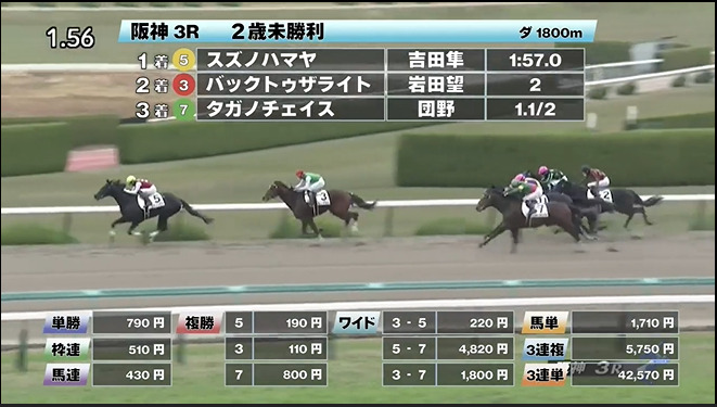 ◎タガノチェイス(9人気)3着 複勝800円 - 12/4【阪神5R】2歳新馬