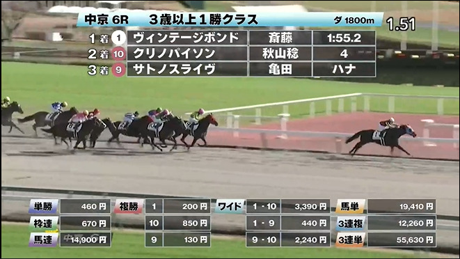 ◎ヴィンテージボンド(3人気)1着 単勝460円、複勝200円