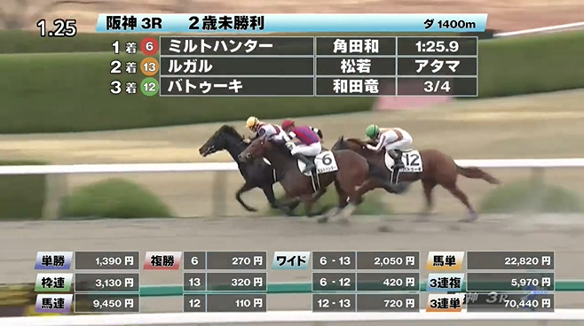 ◎ミルトハンター(4人気)1着 単勝1,390円、複勝270円