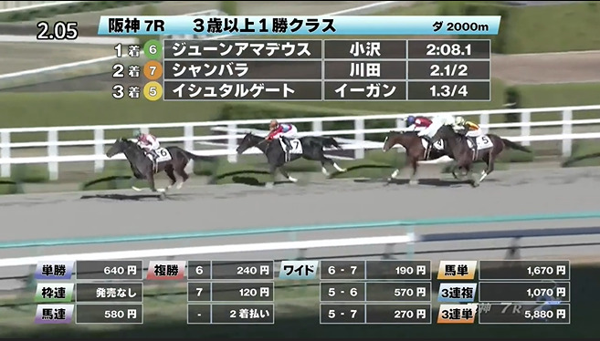 ◎ジューンアマデウス(3人気)1着 単勝640円、複勝240円