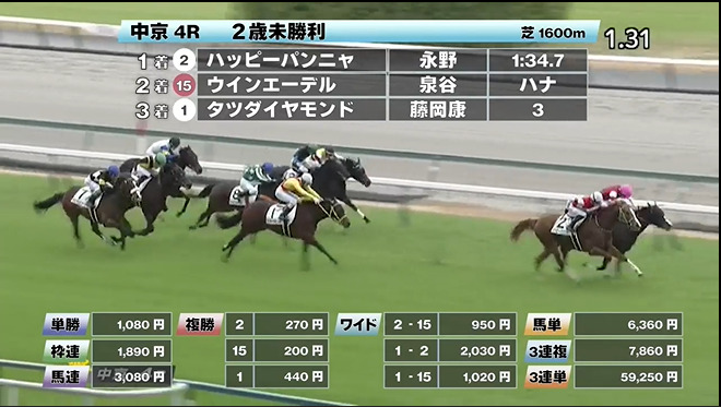 ◎ハッピーパンニャ(5人気)1着 単勝1,080円、複勝270円