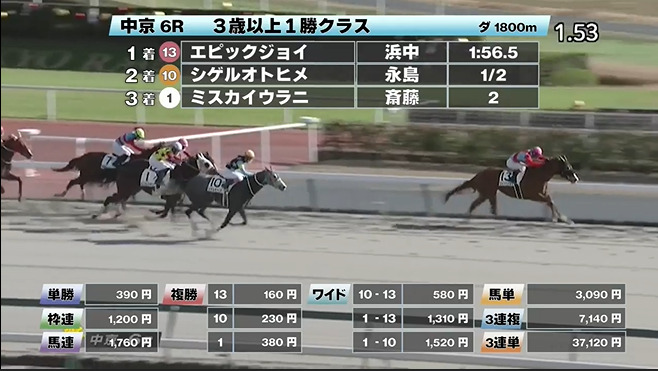 中京競馬の穴馬的中結果