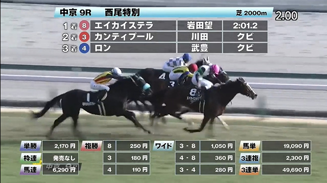 ◎エイカイステラ(5人気)1着 単勝2,170円、複勝250円