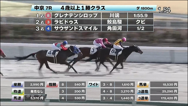 ◎ドナルビー(7人気)3着 複勝480円 - 1/14【中山7R】4歳以上1勝クラス