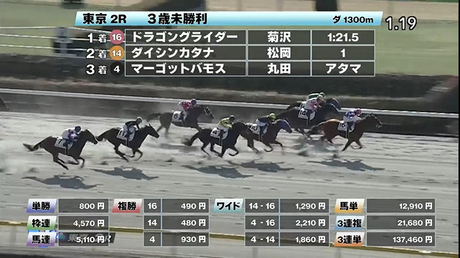 ◎ダイシンカタナ(5人気)2着 複勝480円 - 2/4【東京3R】3歳未勝利