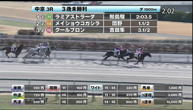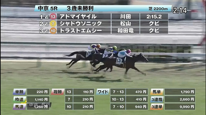 ◎ウインラピーヌ(3人気)2着 複勝220円