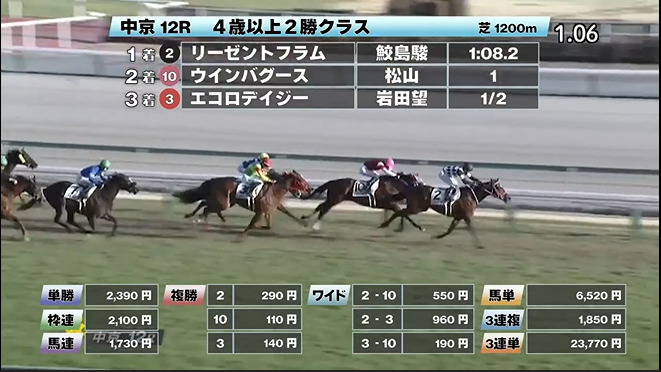 ◎リーゼントフラム(7人気)1着 単勝2,390円、複勝290円