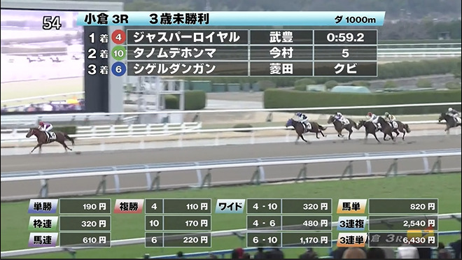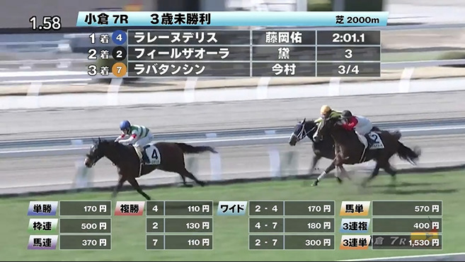 ◎ヘネラルカレーラ(4人気)2着 複勝330円 - 2/4【小倉3R】3歳未勝利