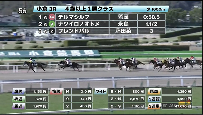 ◎デルマシルフ(5人気)1着 単勝1,150円、複勝310円