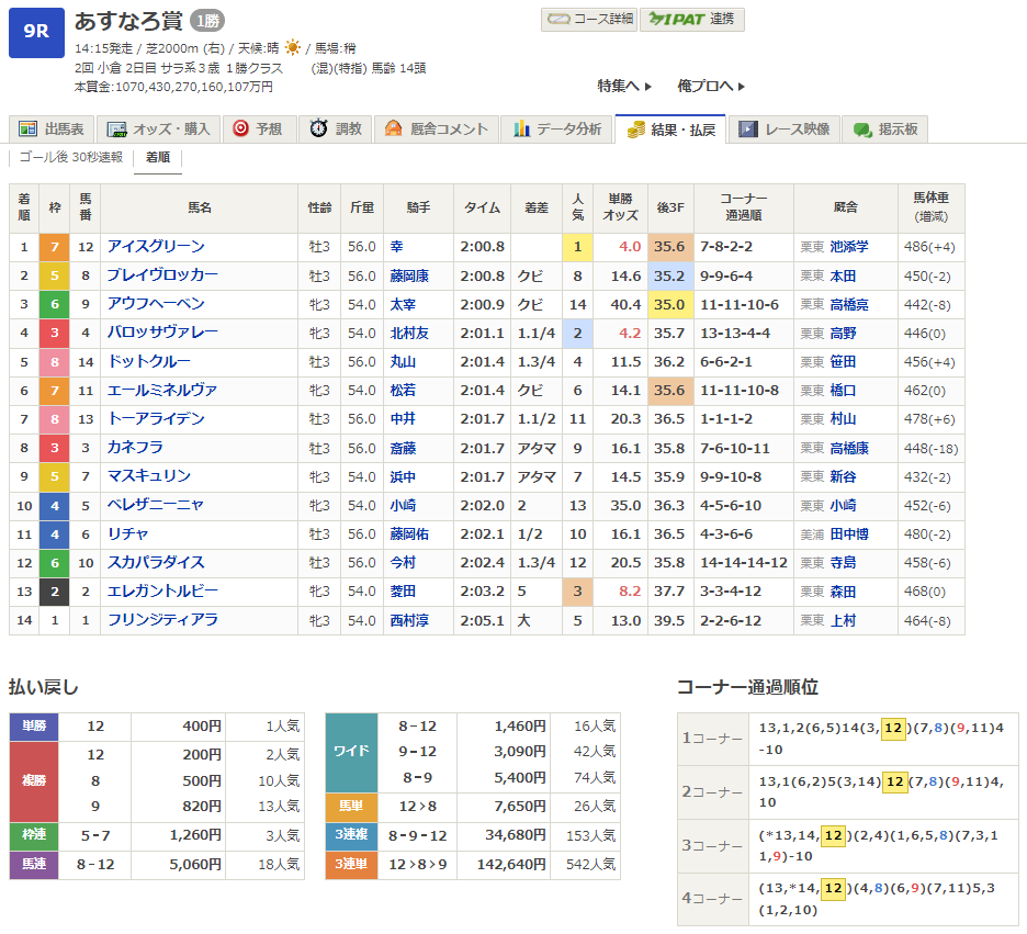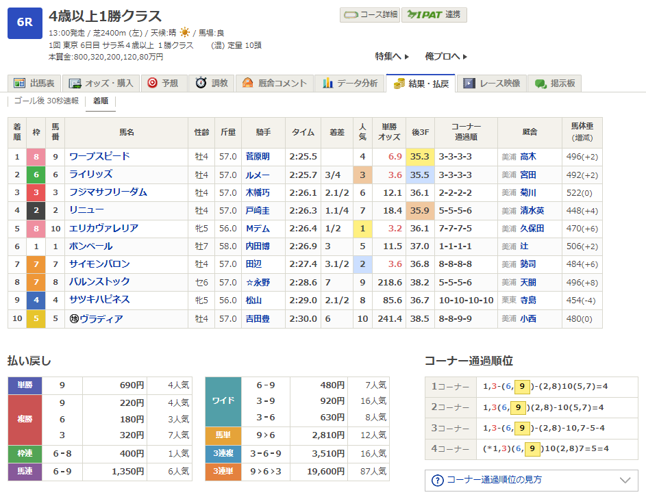 ◎ファロロジー(9人気)1着 単勝3,820円、複勝800円