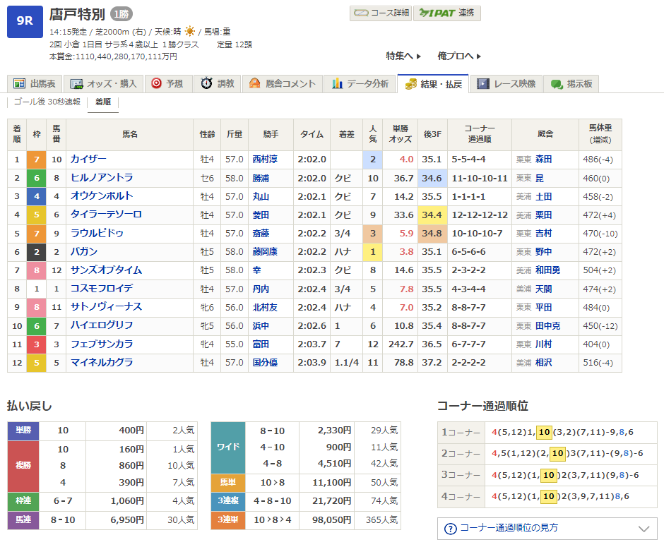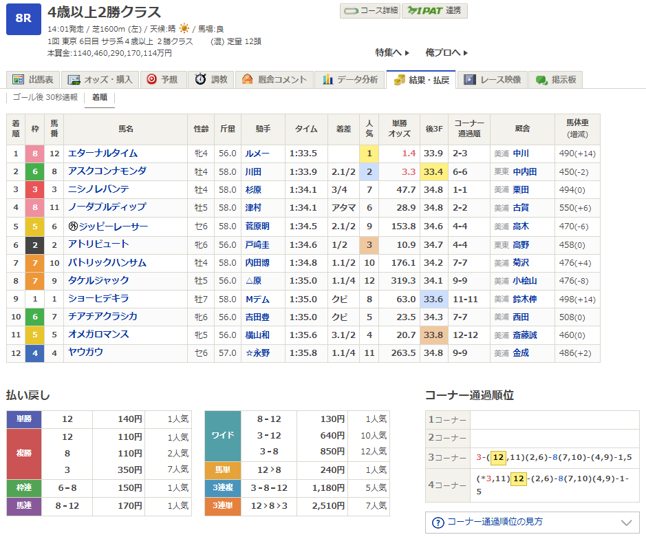 ◎キャプテンドレイク(8人気)2着 複勝350円