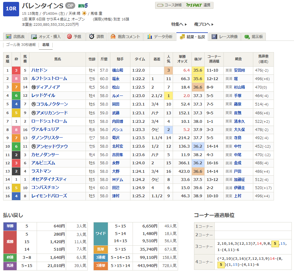 ◎ニシノレバンテ(7人気)3着 複勝350円 - 2/12【東京10R】バレンタインステークス