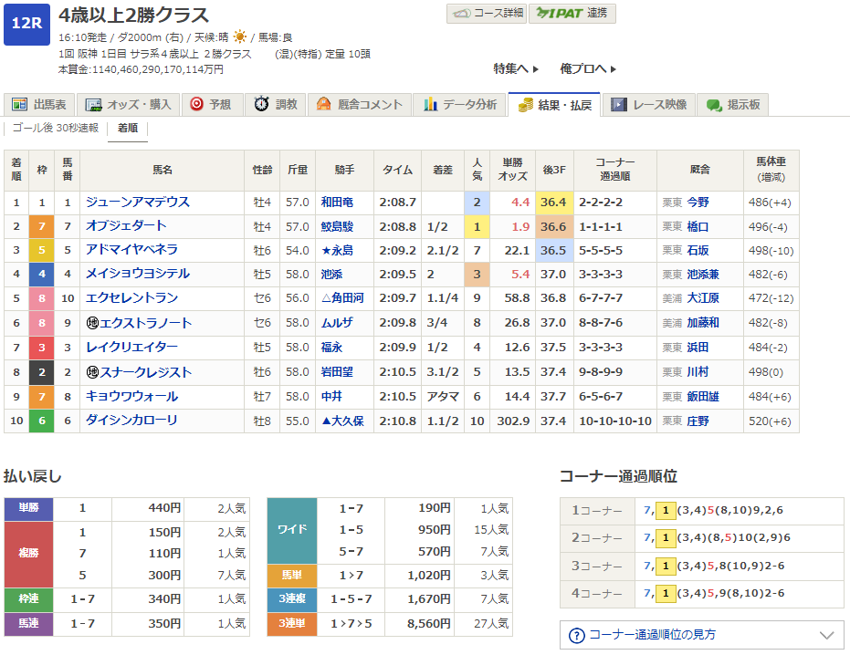 | 2/12 阪神 | 12R | 6R | 50.0% |