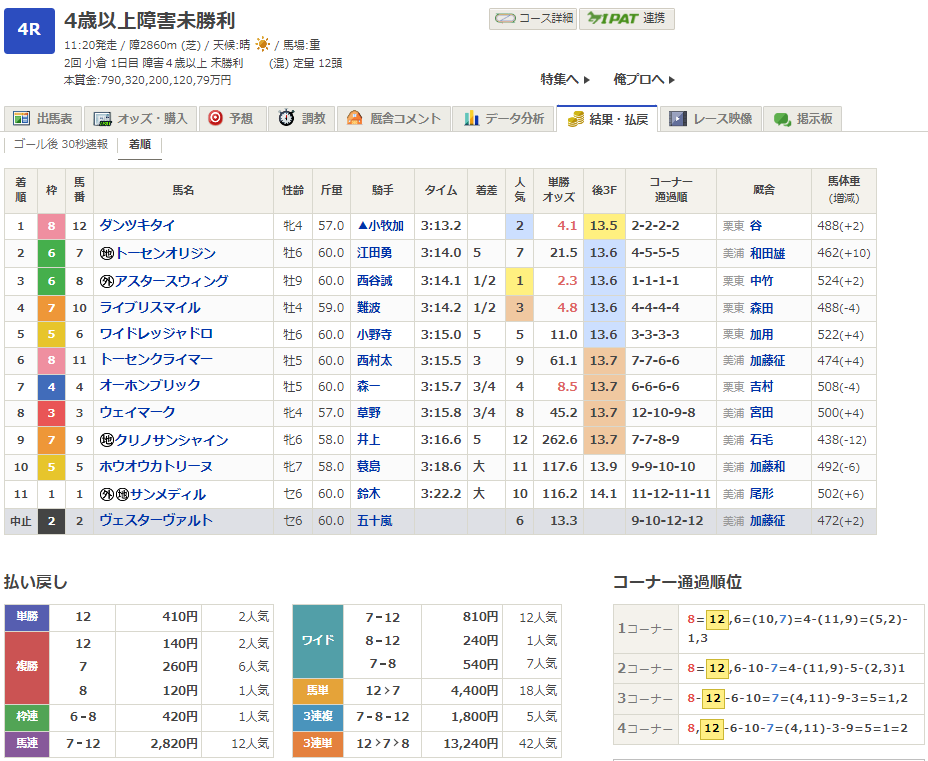 | 2/11 小倉 | 12R | 5R | 41.7% |