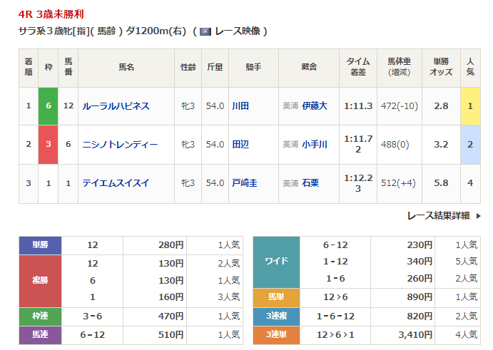 - 3/11【中山4R】3歳未勝利