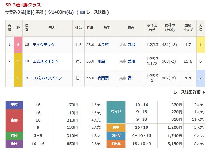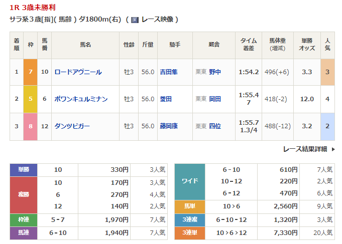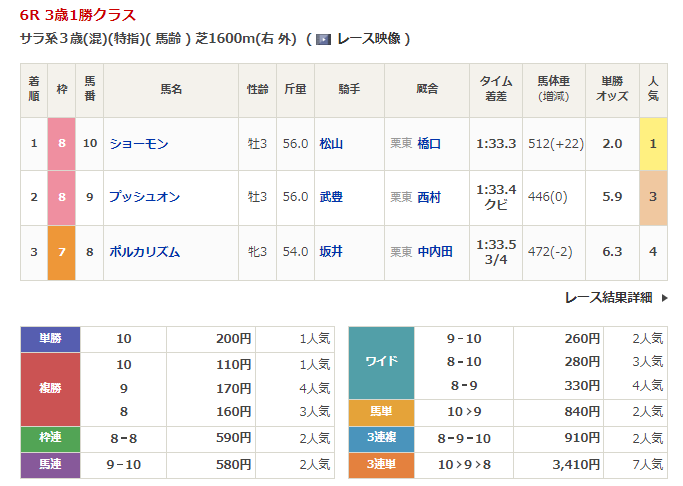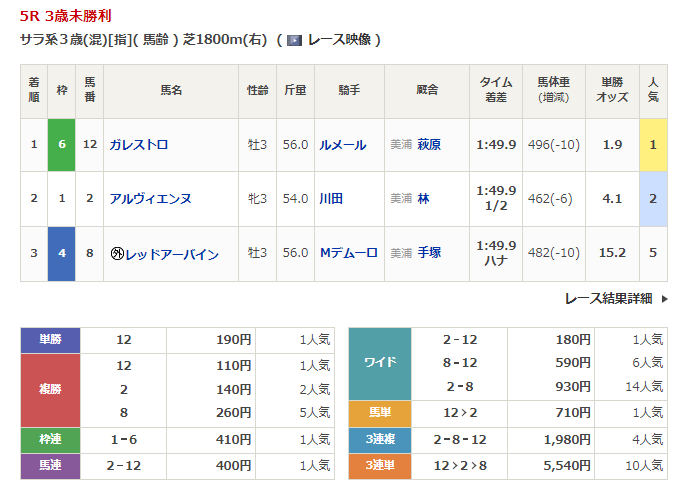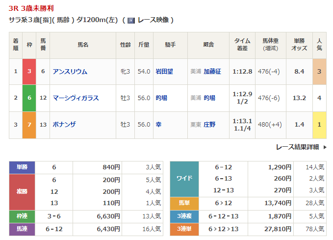 - 3/12【阪神5R】3歳1勝クラス