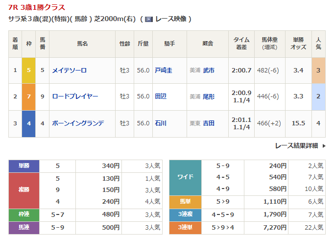 - 3/12【中山7R】3歳1勝クラス