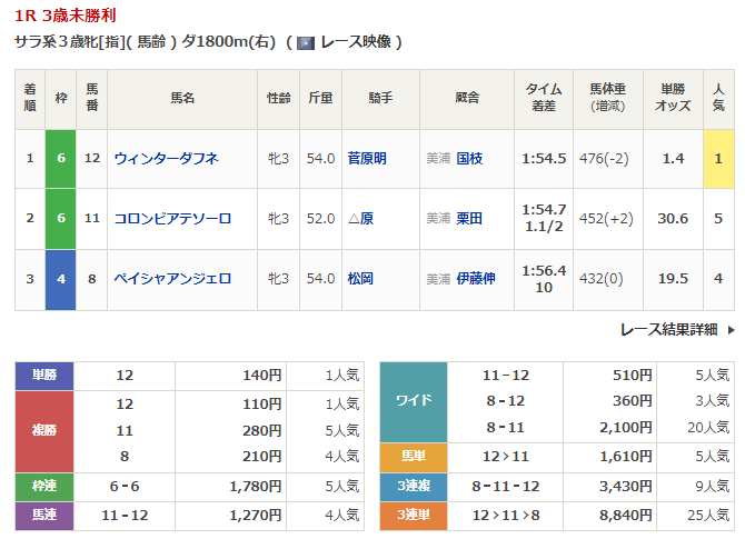 - 3/11【中京1R】3歳未勝利