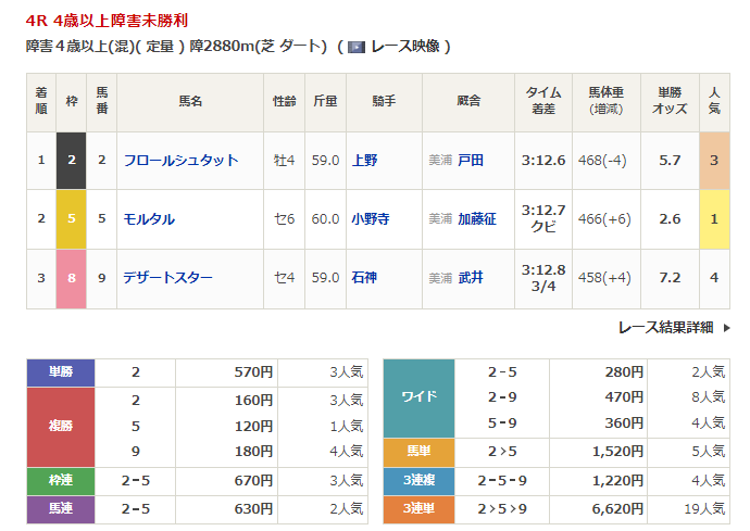 - 3/12【中山4R】4歳以上障害未勝利