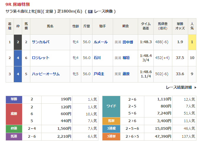 他にも推奨したレースでは土曜中山のアクアマリンステークスでは◎レディバランタイン(13番人気)1着で単勝配当は4,260円、同じく推奨レースであった日曜中山8レースでは◎インペリアルライン(8番人気)2着、◎デリシュレーヌ(9番人気)3着と穴馬がダブル的中の結果に。このレースでは相手馬の★グリューヴルムも1着に入り、3連複では18,970円、3連単では54,830円の配当となりました。