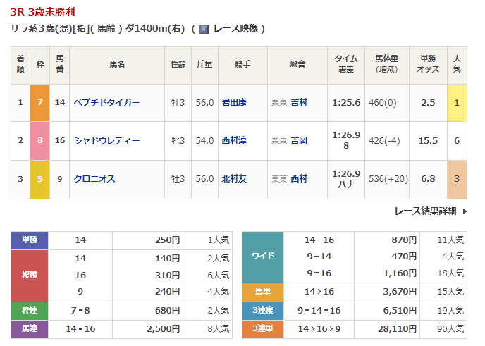 ◎アラタ(6人気)3着 複勝250円