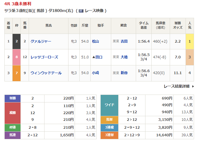 ◎ウィンウッドテール(4人気)3着 複勝210円