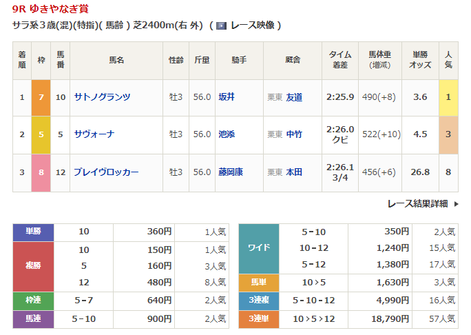 ◎ボーンイングランデ(4人気)3着 複勝240円