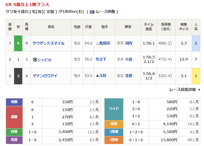 - 3/12【阪神6R】4歳以上1勝クラス
