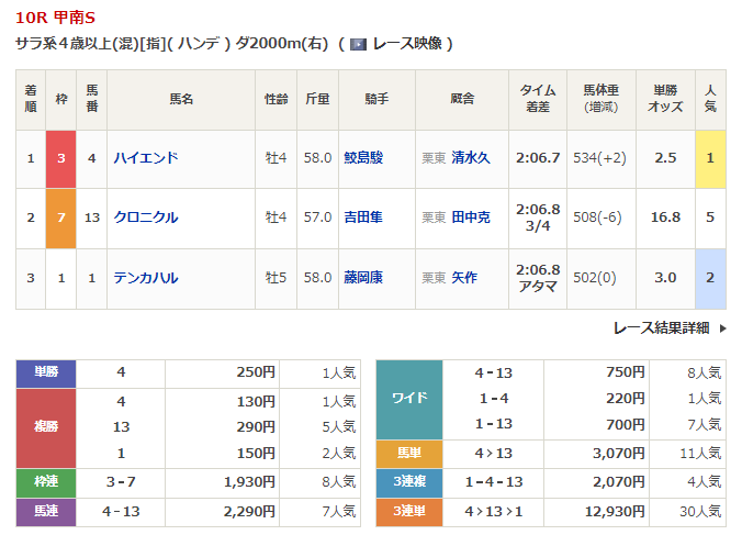 ◎クロニクル(5人気)2着 複勝290円