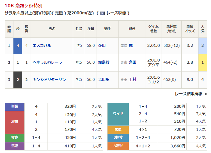 阪神競馬の穴馬的中結果
