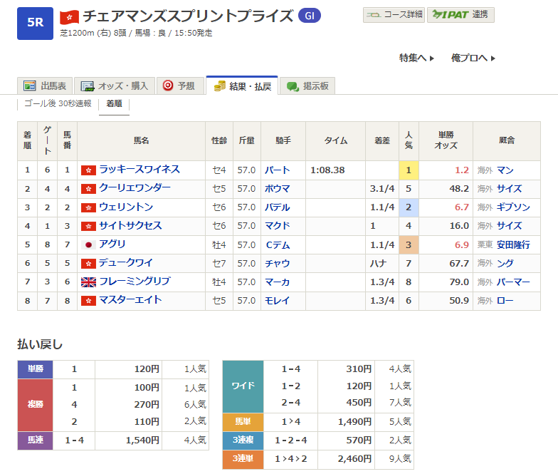 天皇賞は不的中に終わりましたが、先週の重賞では海外GⅠのチェアマンズスプリントプライズで◎クーリエワンダー(5番人気)2着に好走。少頭数のレースでしたが、海外GⅠでも確実に的中に繋げることができました。