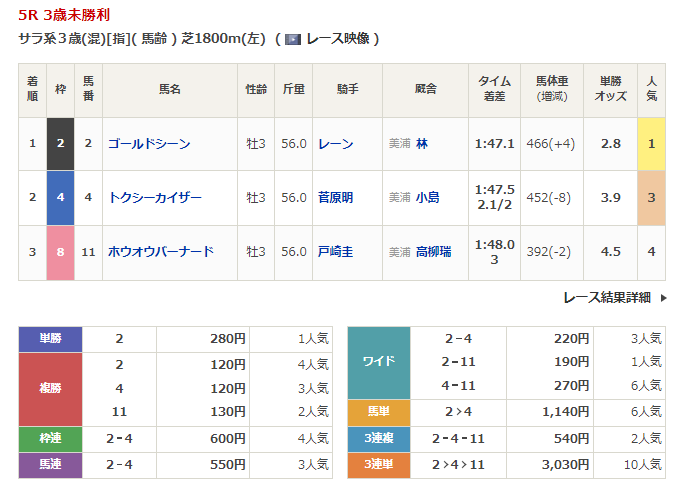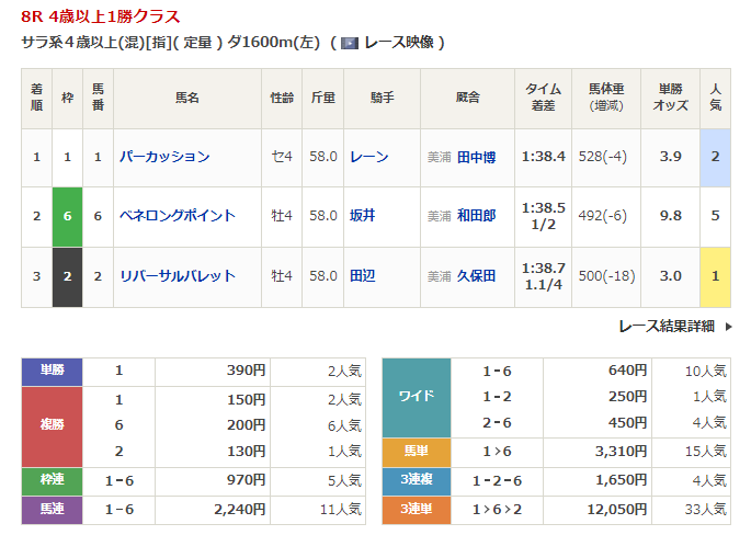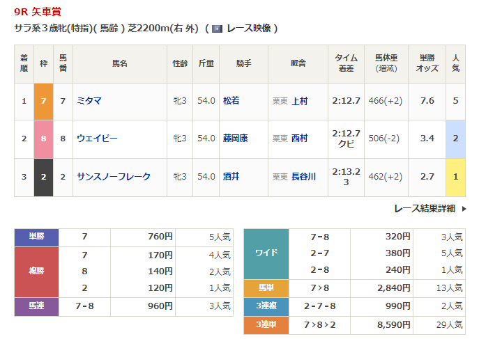◎ミタマ(5人気)1着 単勝760円、複勝170円