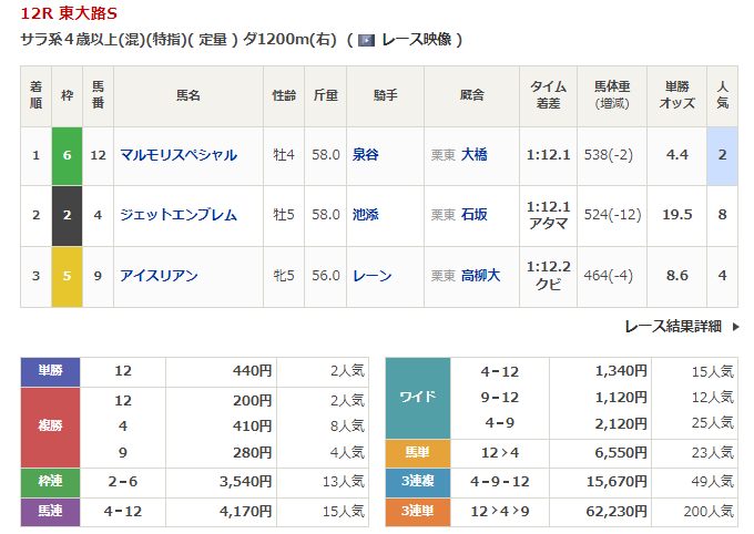 ◎ジェットエンブレム(8人気)2着 複勝410円