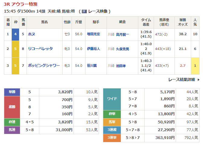 以下は先月の開催で相手馬との組合わせで高配当に繋がったレースを幾つかご紹介します。
