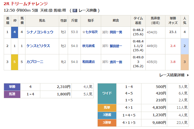 ◎シナノヨシキュウ(4人気)1着 単勝2,310円