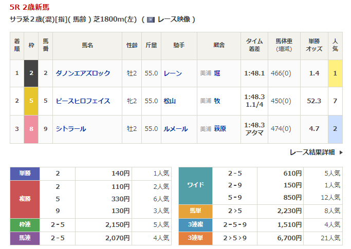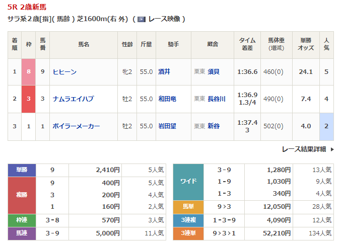 ◎ヒヒーン(5人気)1着 単勝2,410円、複勝400円