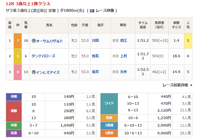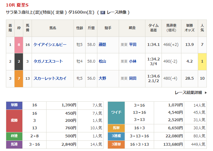 ◎スカーレットスカイ(10人気)3着 複勝760円