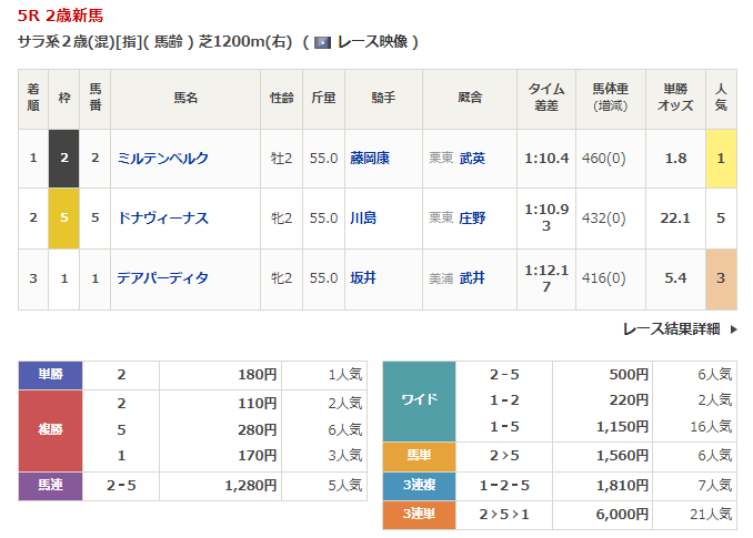 ◎ドナヴィーナス(5人気)2着 複勝280円