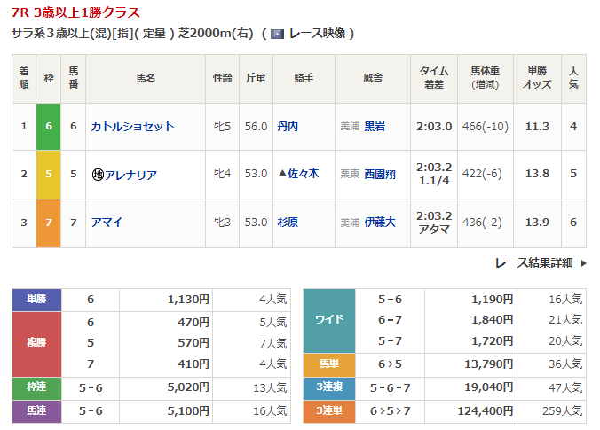 ◎アレナリア(5人気)2着 複勝570円 - 6/10【函館9R】駒ケ岳特別