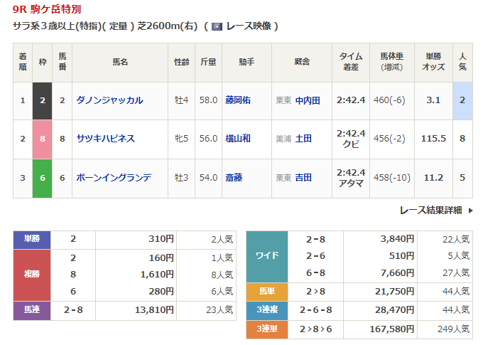 ◎ジュビリーヘッド(5人気)2着 複勝260円