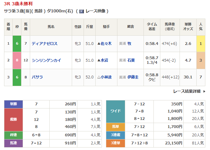 | 6/10 函館 | 12R | 4R | 33.3% |