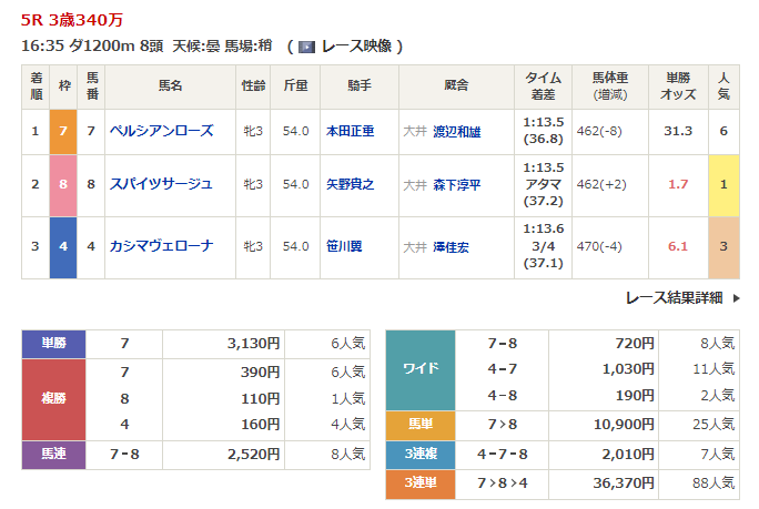 以下は先月の開催で相手馬との組合わせで高配当に繋がったレースを幾つかご紹介します。