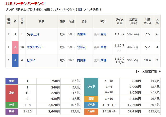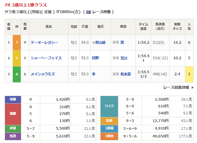 ◎テーオーレガシー(6人気)1着 単勝1,420円、複勝310円