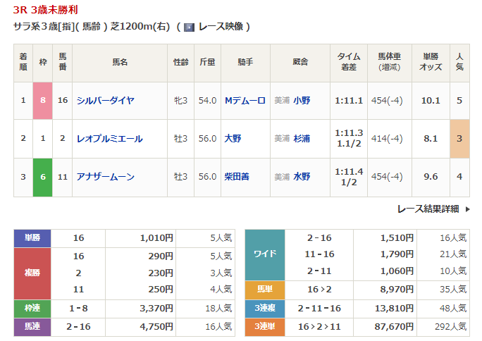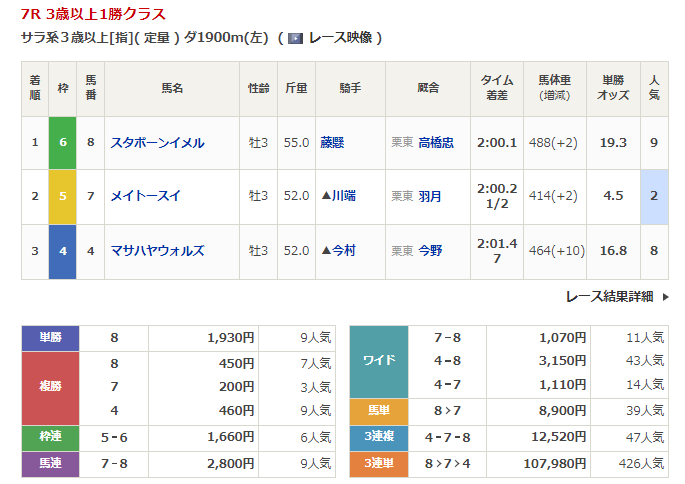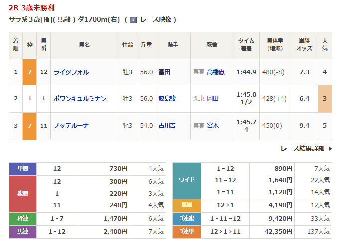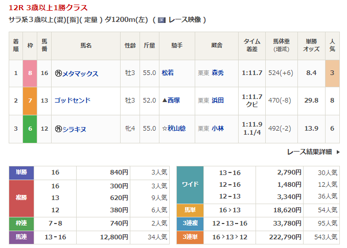 | 7/16 函館 | 12R | 4R | 33.3% |