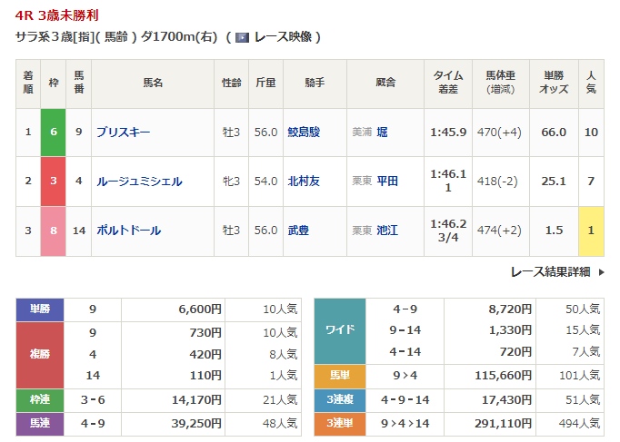 ◎ロゴナンバーワン(6人気)3着 複勝340円