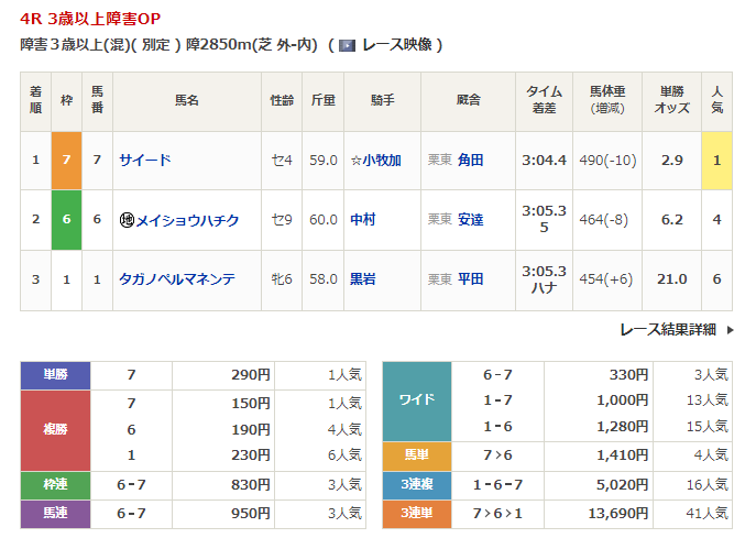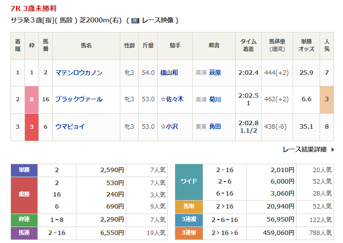 ◎ショウナンマッハ(9人気)2着 複勝860円