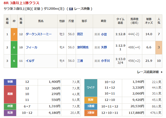 | 8/20 札幌 | 12R | 4R | 33.3% |
