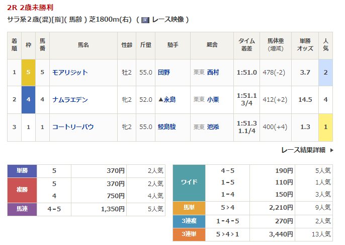 ★4ノヴァエクスプレス 牡2 55.0 モレイラ